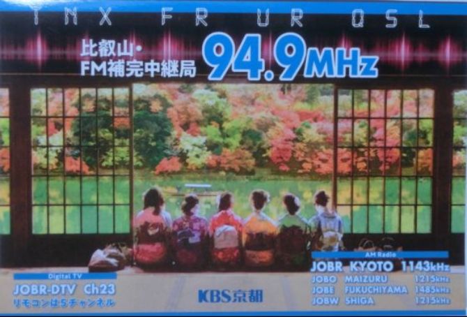 | KBS京都 | JOBR | 近畿 | AM 1143kHz 京都 20kW | 名神高速道路 京都南IC | 34453 | 詳細 |