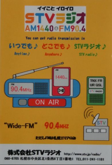 | STVラジオ | JOWF | 北海道・東北 | AM 1440kHz 札幌 50kW | 中央自動車道 石川PA | 53333 | 詳細 |