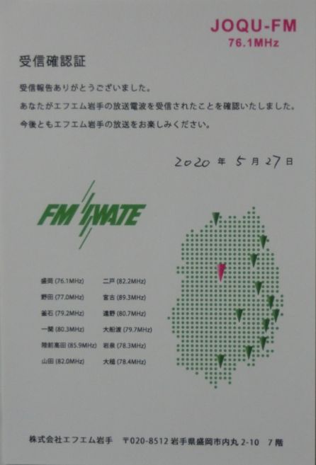 もらうには、まずある放送局を受信した記録(これを受信報告書と呼ぶ)を放送局に郵送します。たったこれだけです。