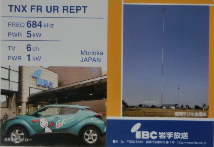 | 岩手放送 | JODF | 北海道・東北 | AM 684kHz 岩手県紫波郡 5kW | 岩手県矢巾町 | 55555 | 詳細 |