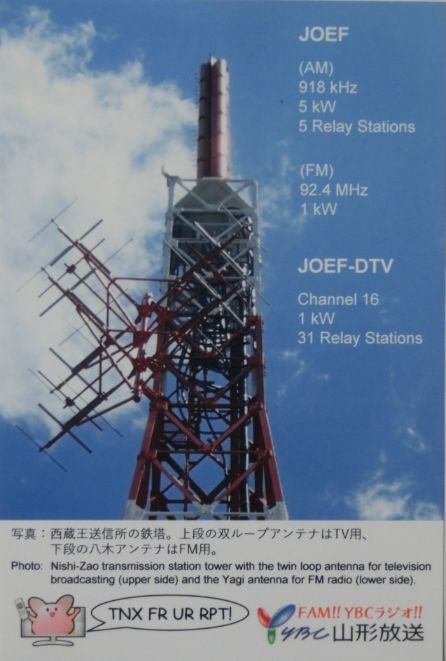 | 山形放送 | JOEF | 北海道・東北 | AM 918kHz 山形市 5kW | 北海道乙部町 | 11111 | 詳細 |