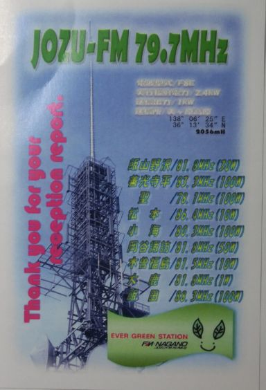 | FM長野 | JOZU-FM | 関東甲信越 | FM 81.8MHz 岡谷諏訪 50W | 諏訪市 | 45353 | 詳細 |