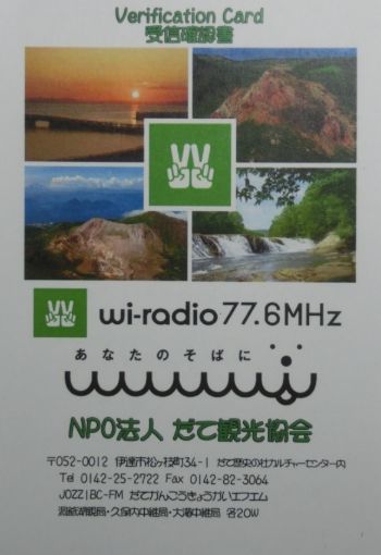 | wi-radio | JOZZ1BC-FM | 北海道・東北 | FM 77.6MHz 伊達市 20W | 豊浦噴火湾PA | 55555 | 詳細 |